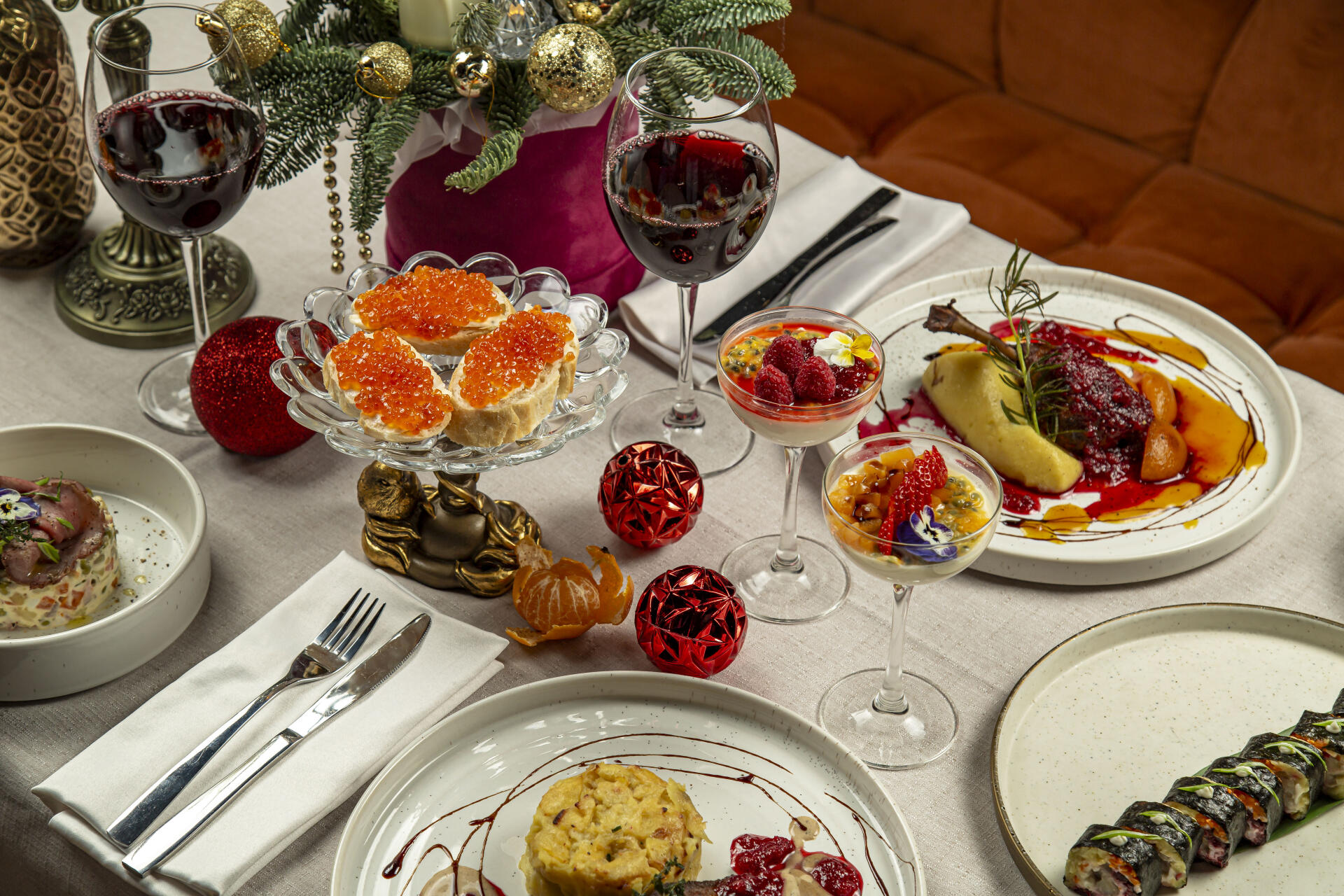 Мы составили изысканное меню, состоящее из холодных и горячих закусок, салатов, горячих блюд и десерта