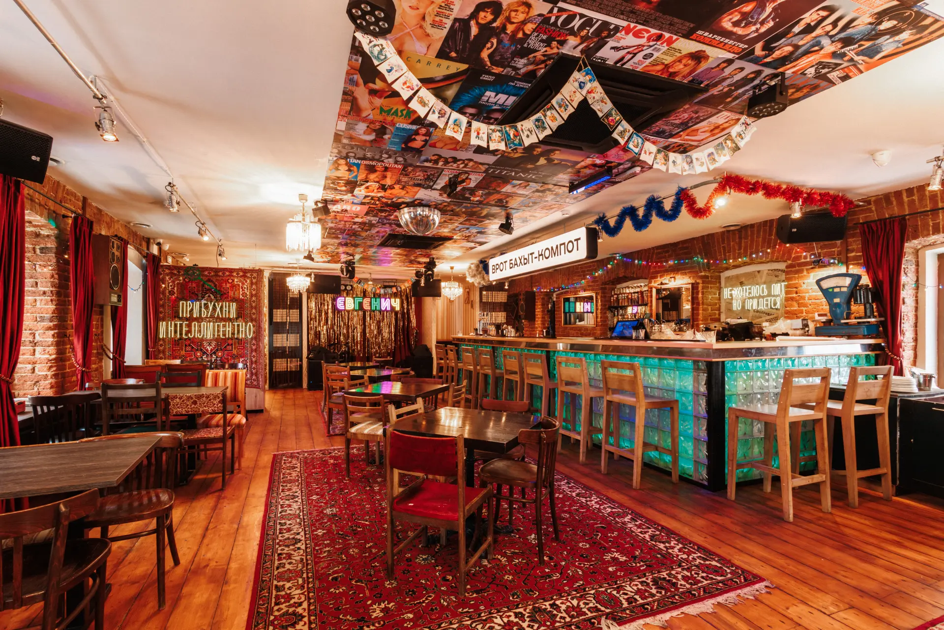 Бар «Евгенич» на Пятницкой приглашает провести время с друзьями и родными. Окунитесь в атмосферу праздников из детства! Вас ждут уютные залы в стиле 80-90-х, домашняя кухня, авторские настойки и программа с конкурсами, караоке и дискотекой.