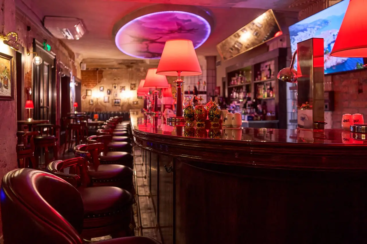 Техническое оснащение: профессиональная аудиосистема, 2 больших телевизора, стильная барная стойка, гибкая система освещения