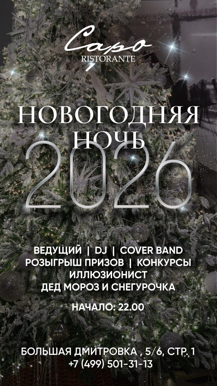 Изысканная новогодняя ночь в самом центре столицы с панорамой на Москву-реку. В программе вечера: роскошный банкет, все напитки без ограничений, зрелищная новогодняя шоу-программа и танцы до утра. Многоуровневый стильный зал с окнами в пол, праздничный декор и новогодняя фотозона, открытая терраса с видом на новогоднюю Москву – всё это позволит нашим фотографам создать волшебные снимки вашей новогодней феерии!