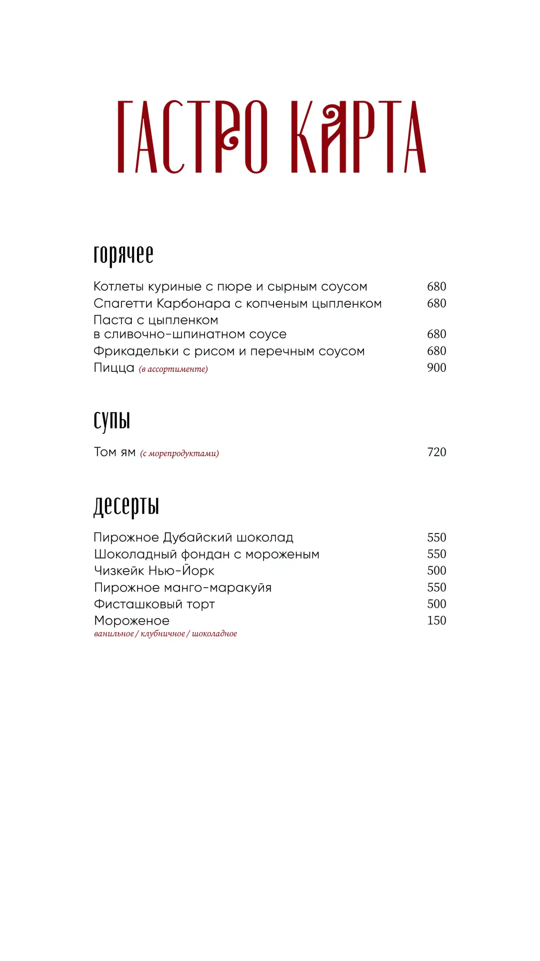 ОсновнойСтолов: 16; Посадочных мест: 66; Этаж: 1.