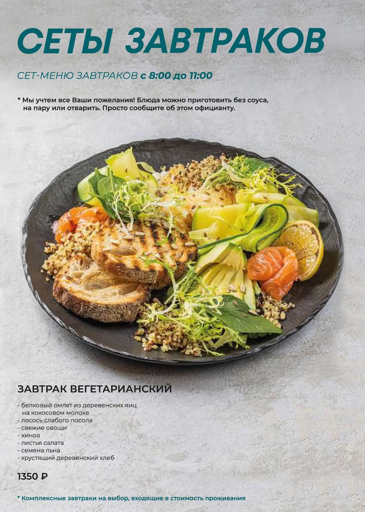 ЗАВТРАК ВЕГЕТАРИАНСКИЙ1350 руб.