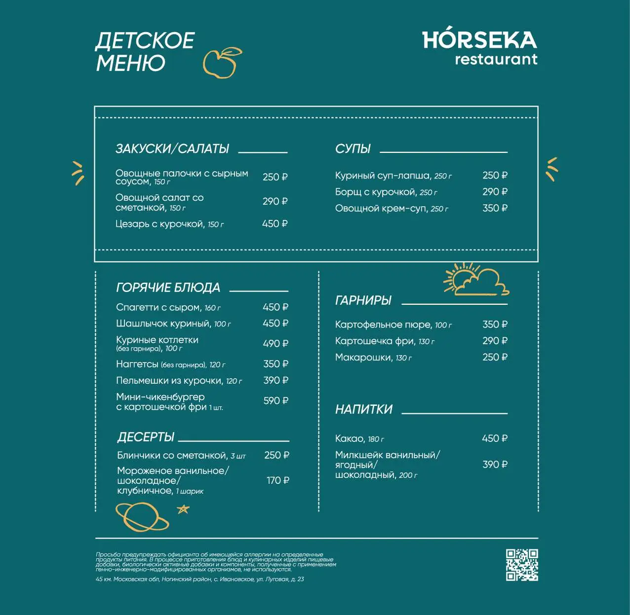 - Детское меню
