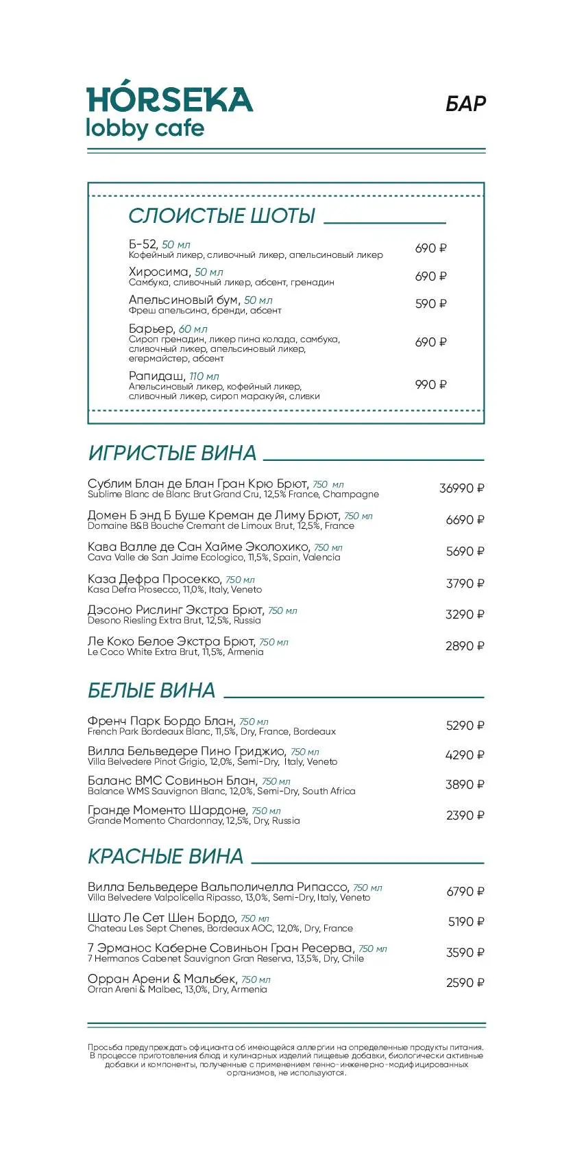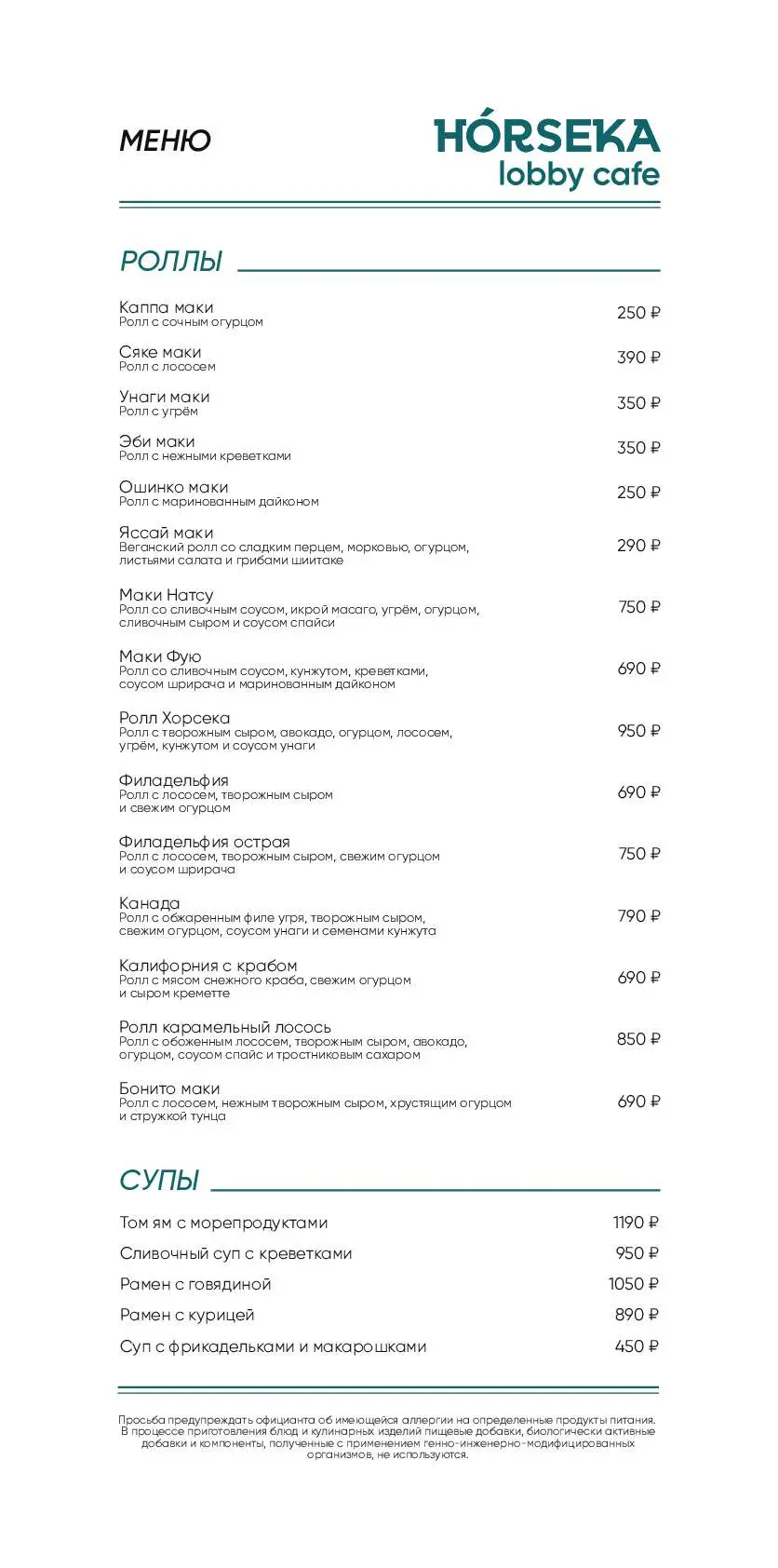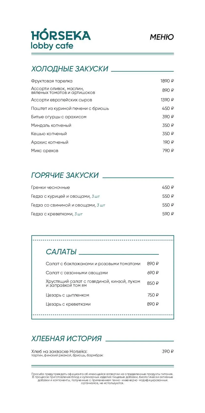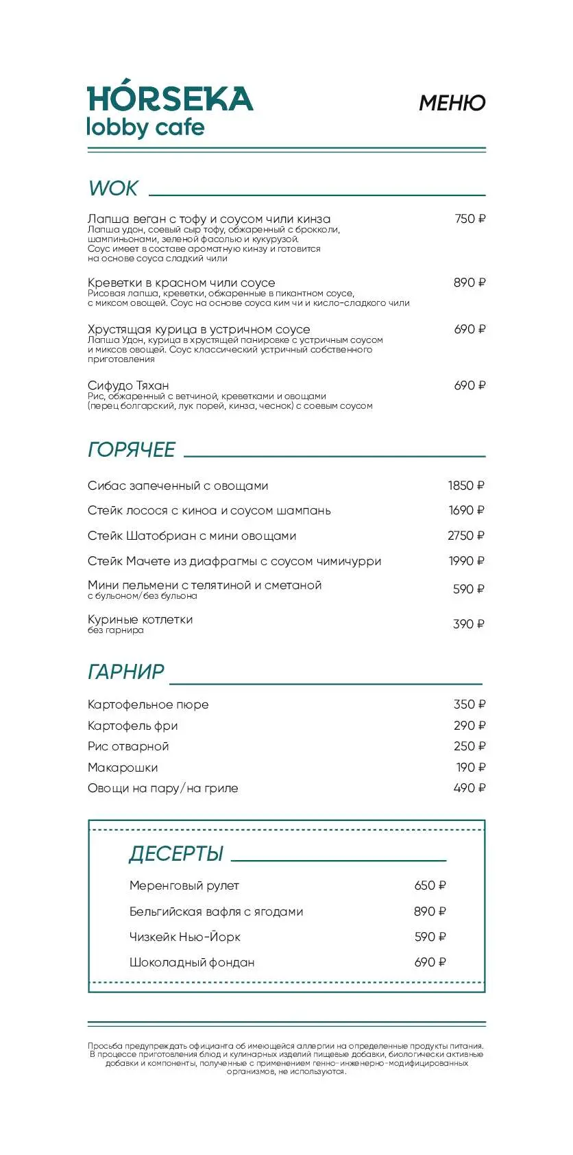 - Меню от шеф-повара