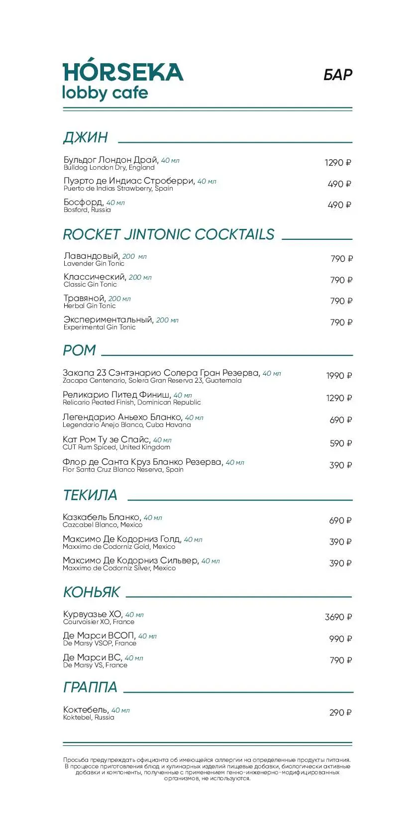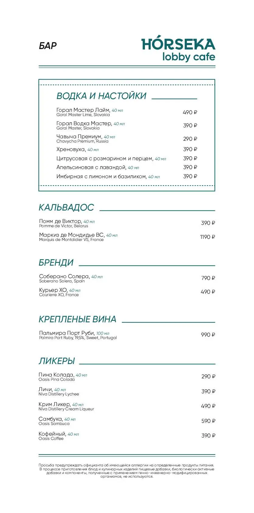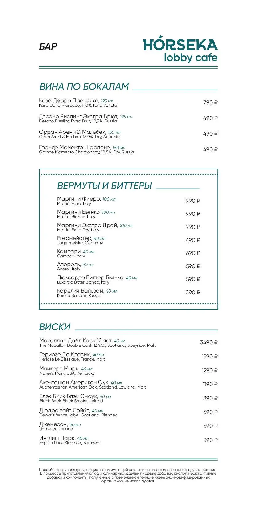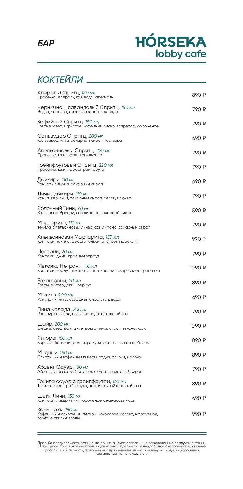 - Меню от шеф-повара