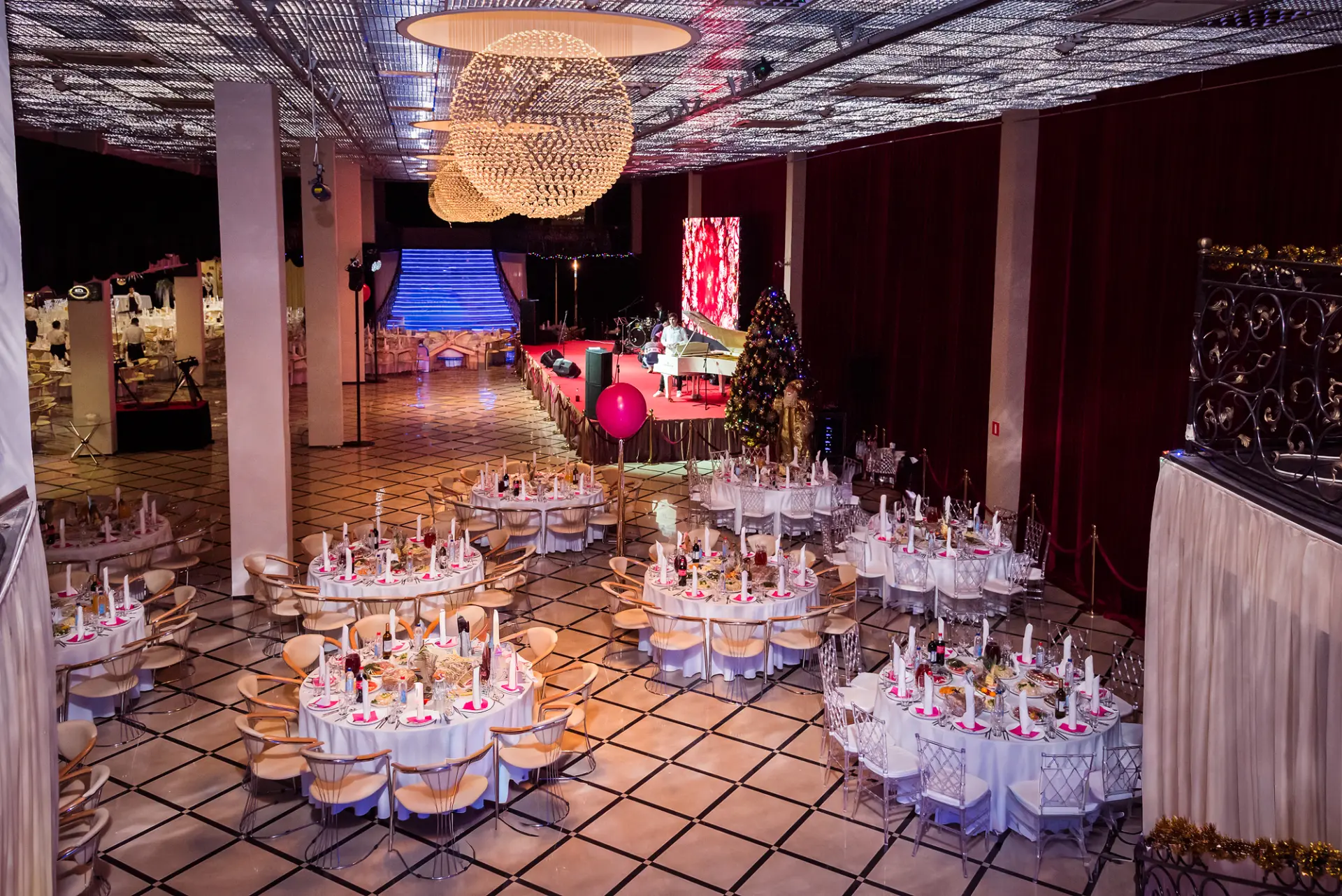 Банкетная площадка Grand Paradise – это отличное место для проведения модных показов, шикарных свадеб, роскошных юбилеев, торжественных и деловых мероприятий. Заведение предлагает три вместительных богато украшенных зала, оборудованных профессиональной акустикой и светотехникой.