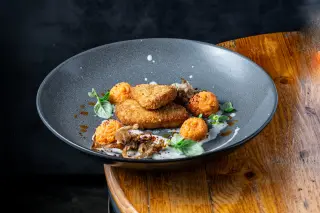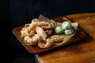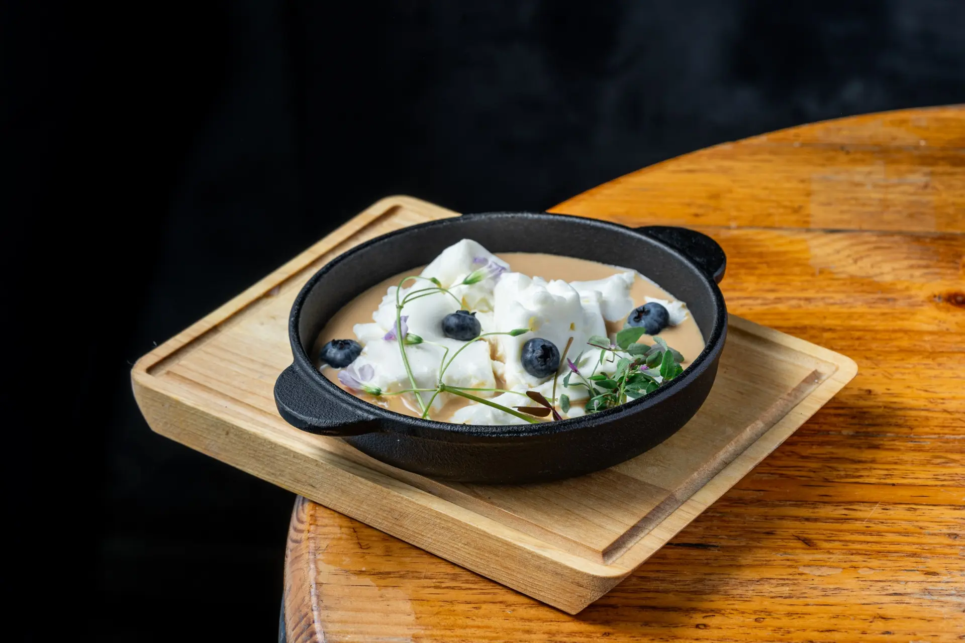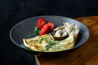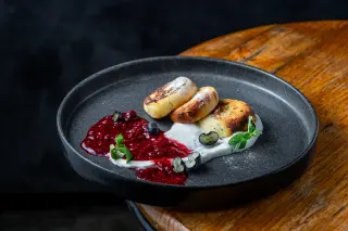 Сулугуни в панировке с соусом из чёрной смородины590 руб.