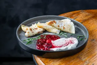 Блинчики с уткой и соусом из чёрной смородины550 руб.