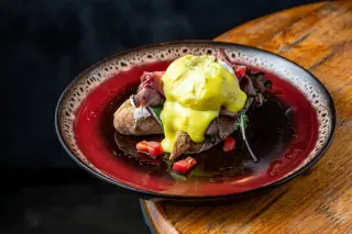 Бифштекс из лося с яйцом пашот и пюре из красной чечевицы1190 руб.