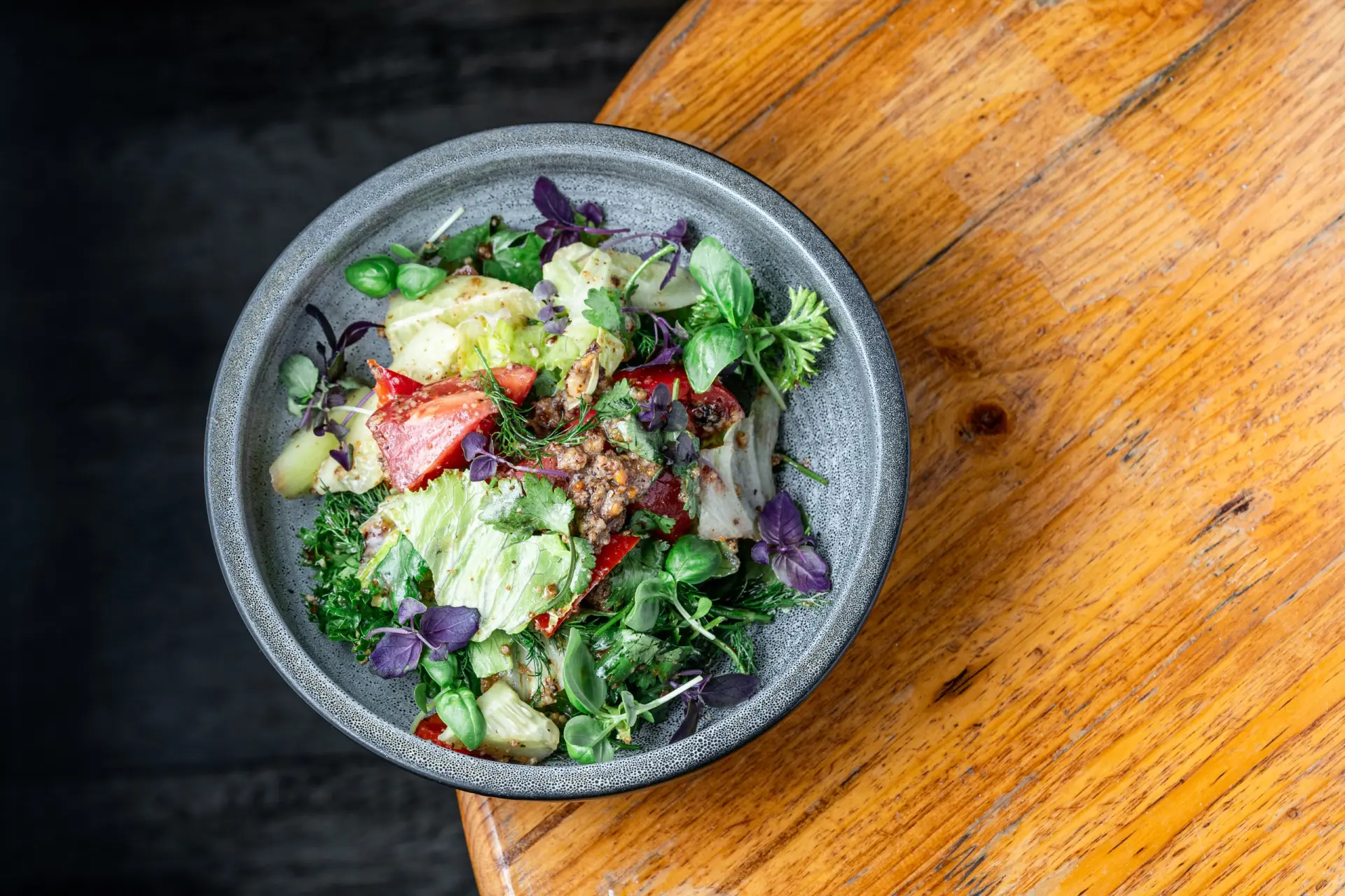 Овощной салат под орехово-гранатовой заправкой590 руб.