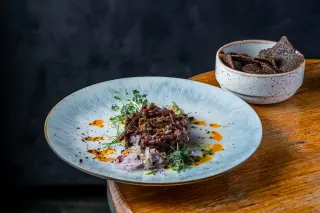 Тар-тар из косули с умами соусом и ржаным хлебом820 руб.