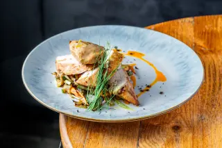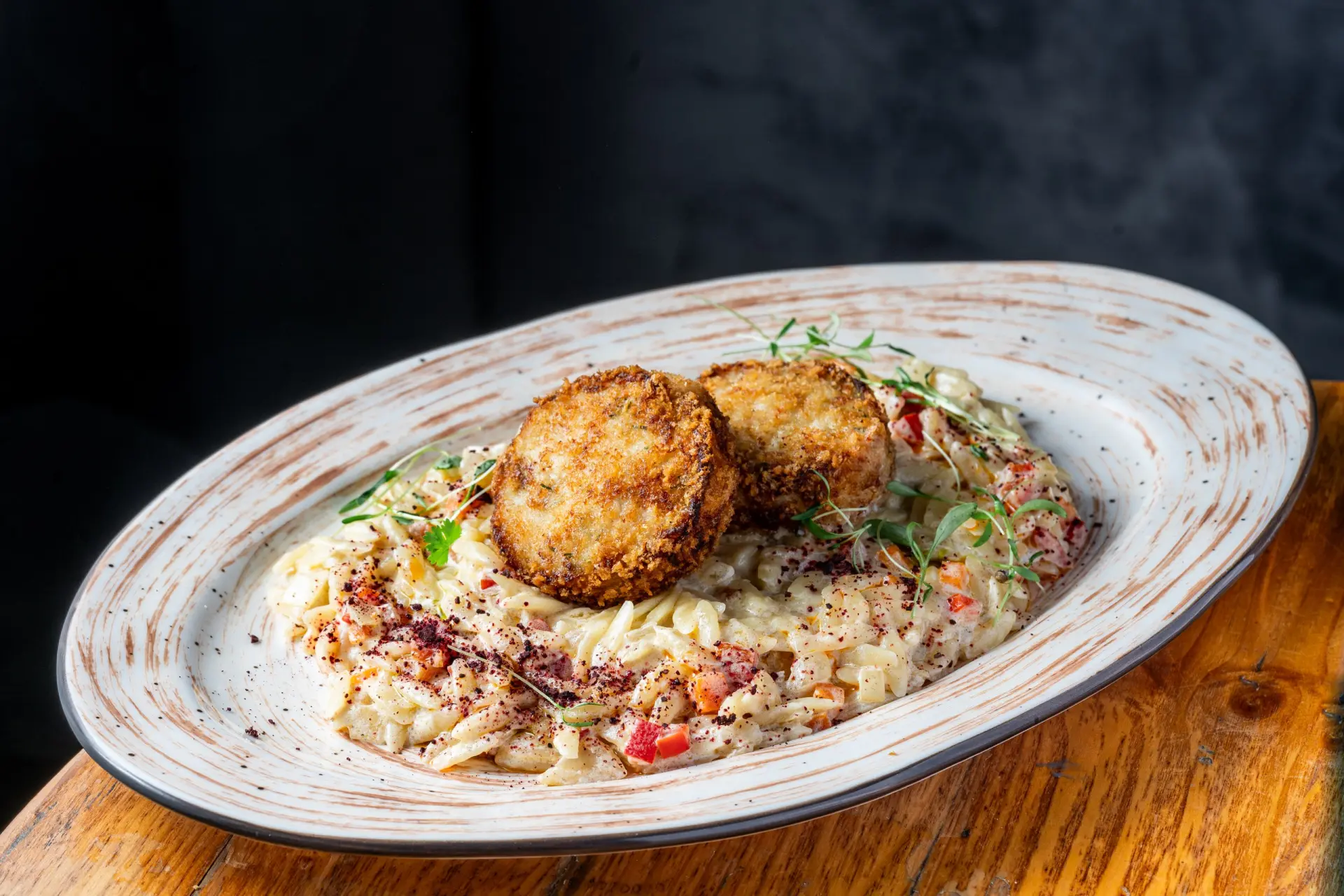 Щучьи котлеты фаршированные щучьей икрой со сливочным Орзо1290 руб.