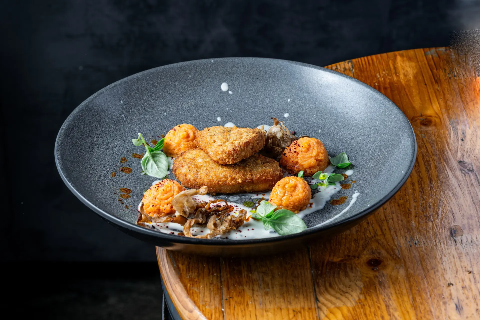 Куриные котлеты в ореховой панировке с морковно-картофельным кремом790 руб.