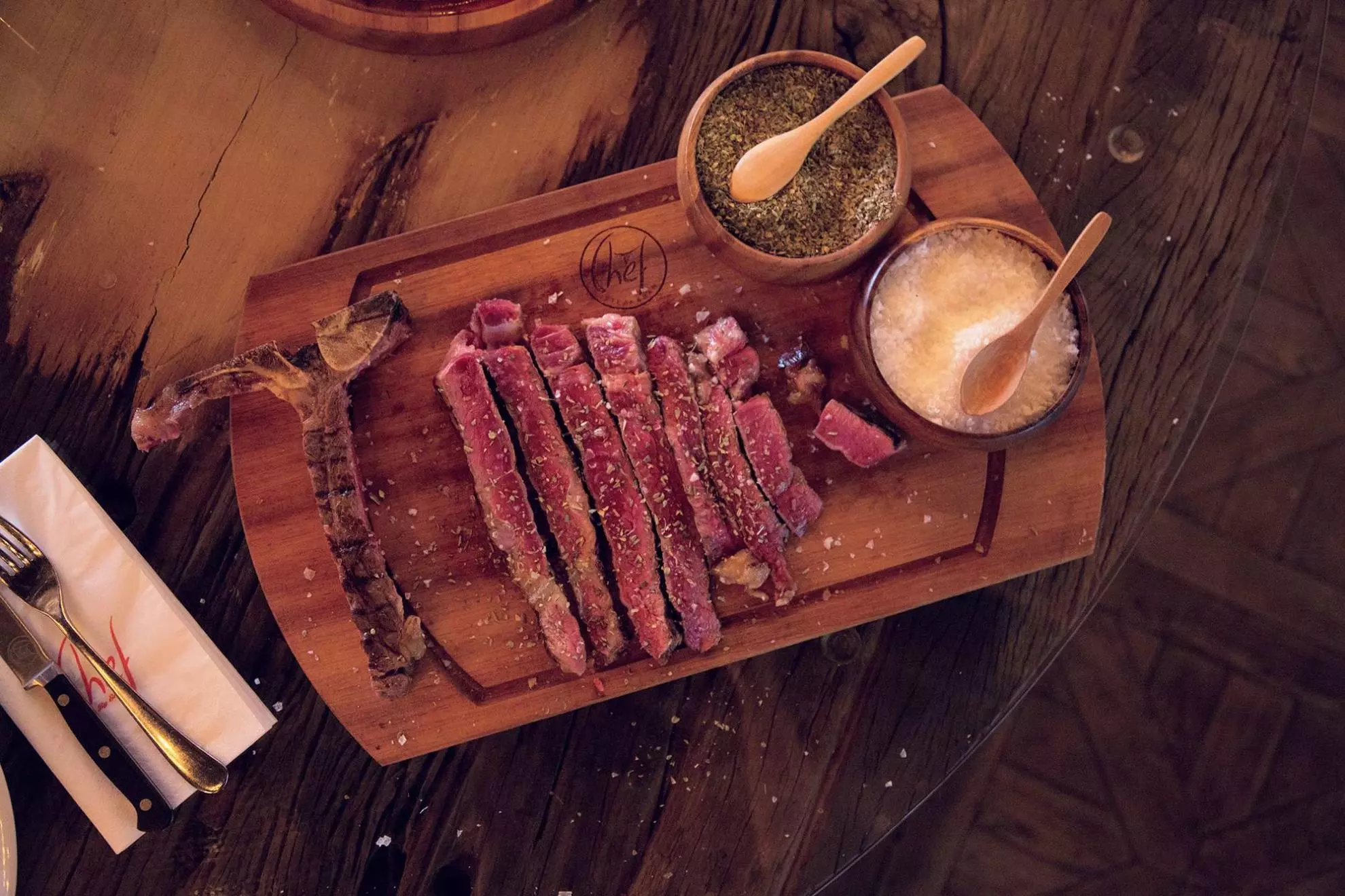 Особый стейк от шеф-повара (800-840 гр)Блюдо от Шефа Эрдала. Стейк из вырезки мраморной говядины. Подается с гренками.8000 руб.