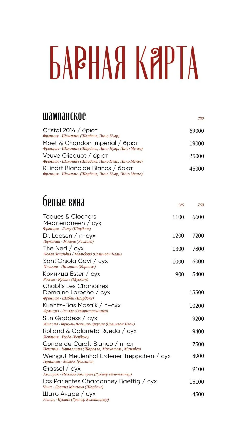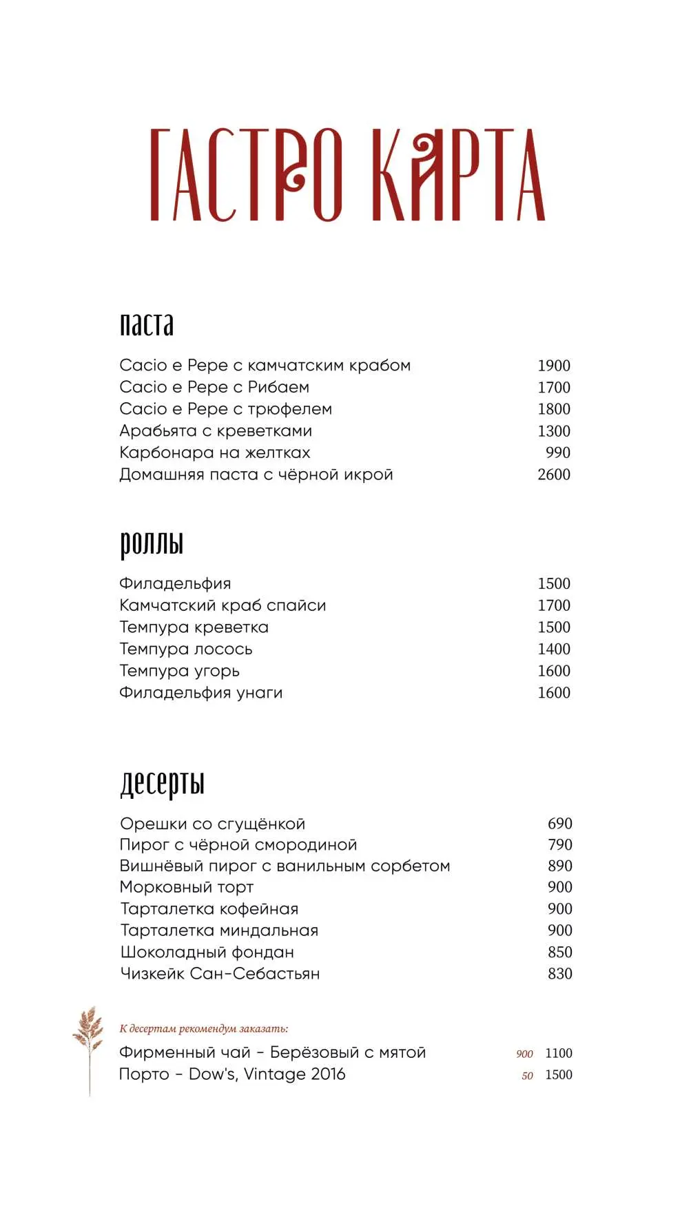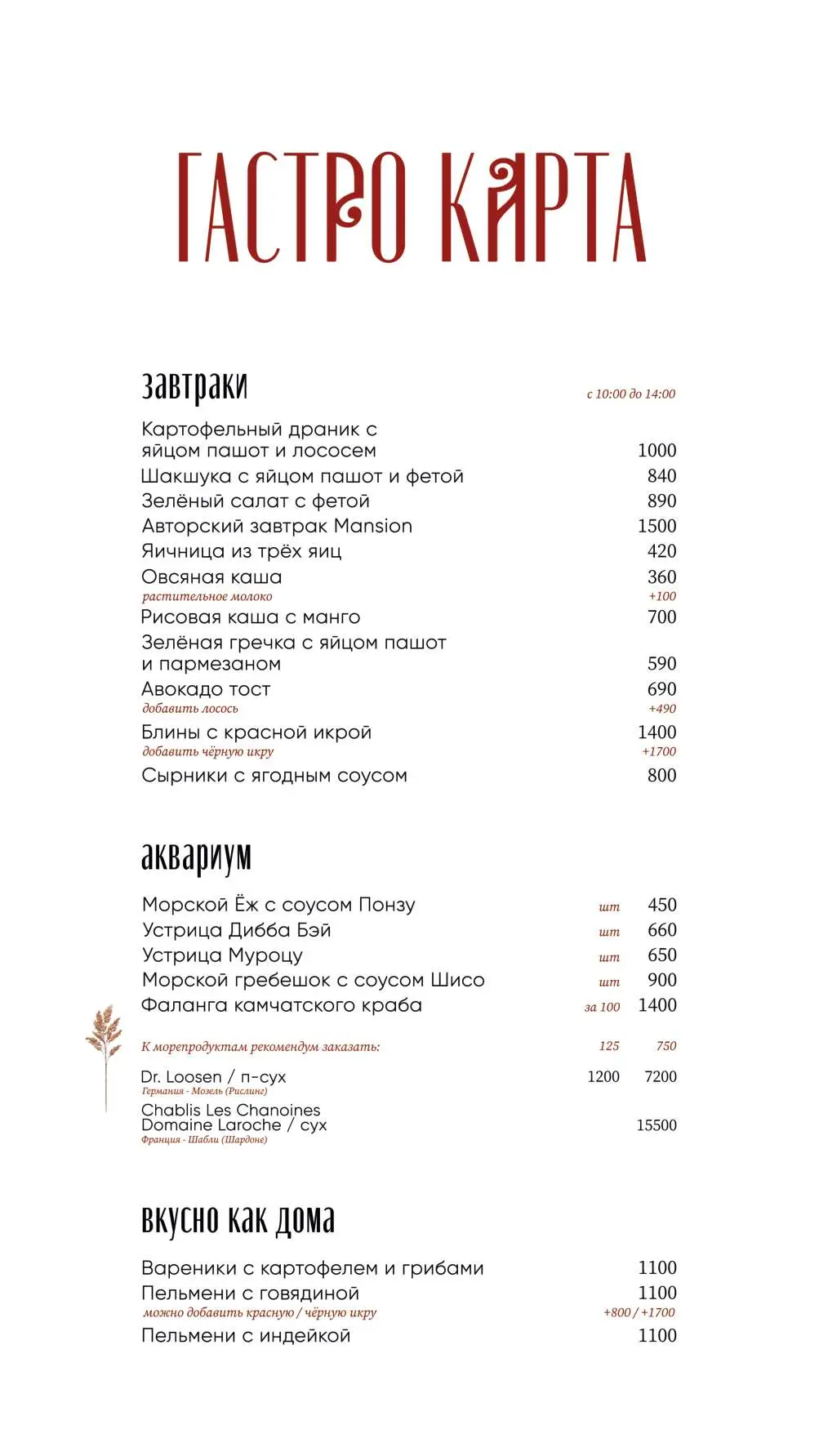 Средний счёт: от 3500 ₽