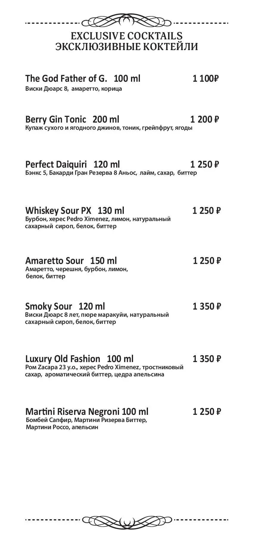 Севиче из сибасаФиле охлажденного морского сибаса, маринованное в соусе «цитронет», с сердцевиной спелого томата биф, мякотью грейпфрута и листьями кинзы1650 руб.