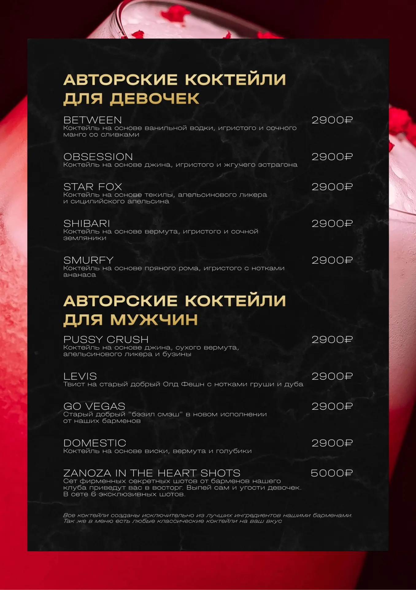 Стриптиз-клуб Zanoza приглашает отдохнуть в уютной обстановке под приятную музыку. Для вас – зажигательные шоу, тематические вечеринки, авторские коктейли на любой вкус.