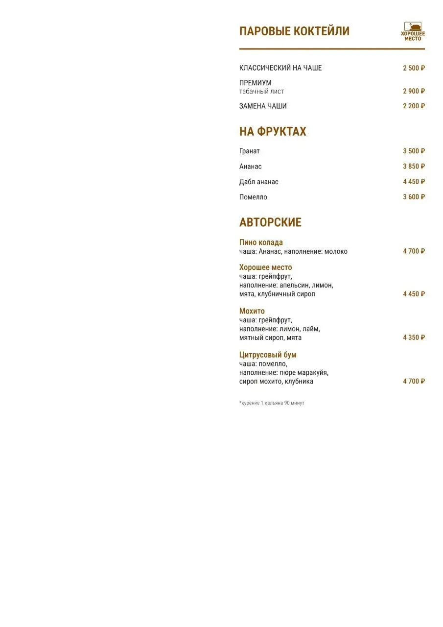 Интерьер Хорошего Места — стильный лофт с художественно отколотой штукатуркой и выщербленной кирпичной кладкой, панно из подсвеченных камней, резными рамами вокруг экранов. Гости могут размещаться в роскошных креслах и на мягких диванах со множеством подушек. Дополнительный декор заведения выполнен из узорчатой глазированной плитки, суккулентов в состаренных горшочках, плетеных корзин и клеток. Наша открытая кухня приготовит для вас множество вкуснейших блюд, а доброжелательный персонал не оставит никого без внимания.