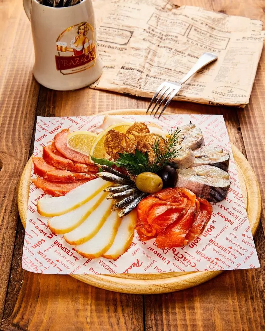Рыбное ассорти (200/50/30 гр)Масляная х/к, лосось с/с, кальмар х/к, горбуша х/к, скумбрия с/с850 руб.