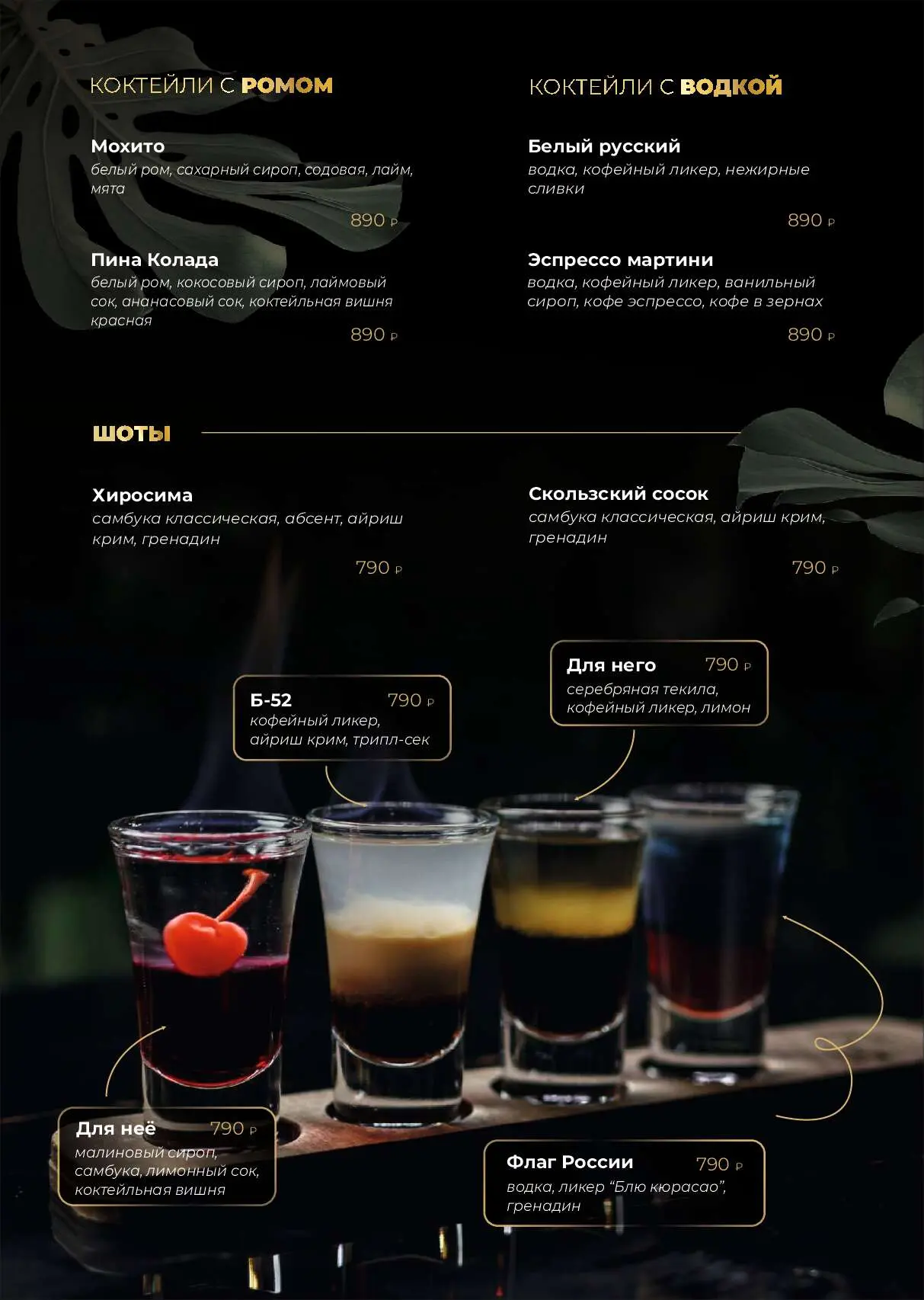 Хиросимасамбука классическая, абсент, айриш крим, гренадин790 руб.