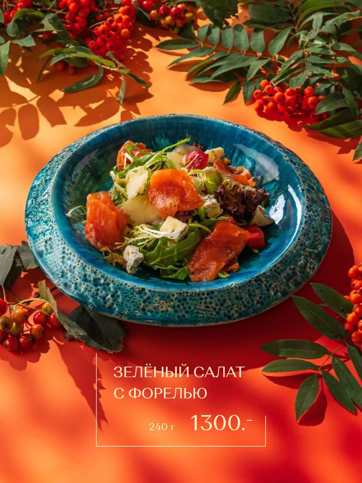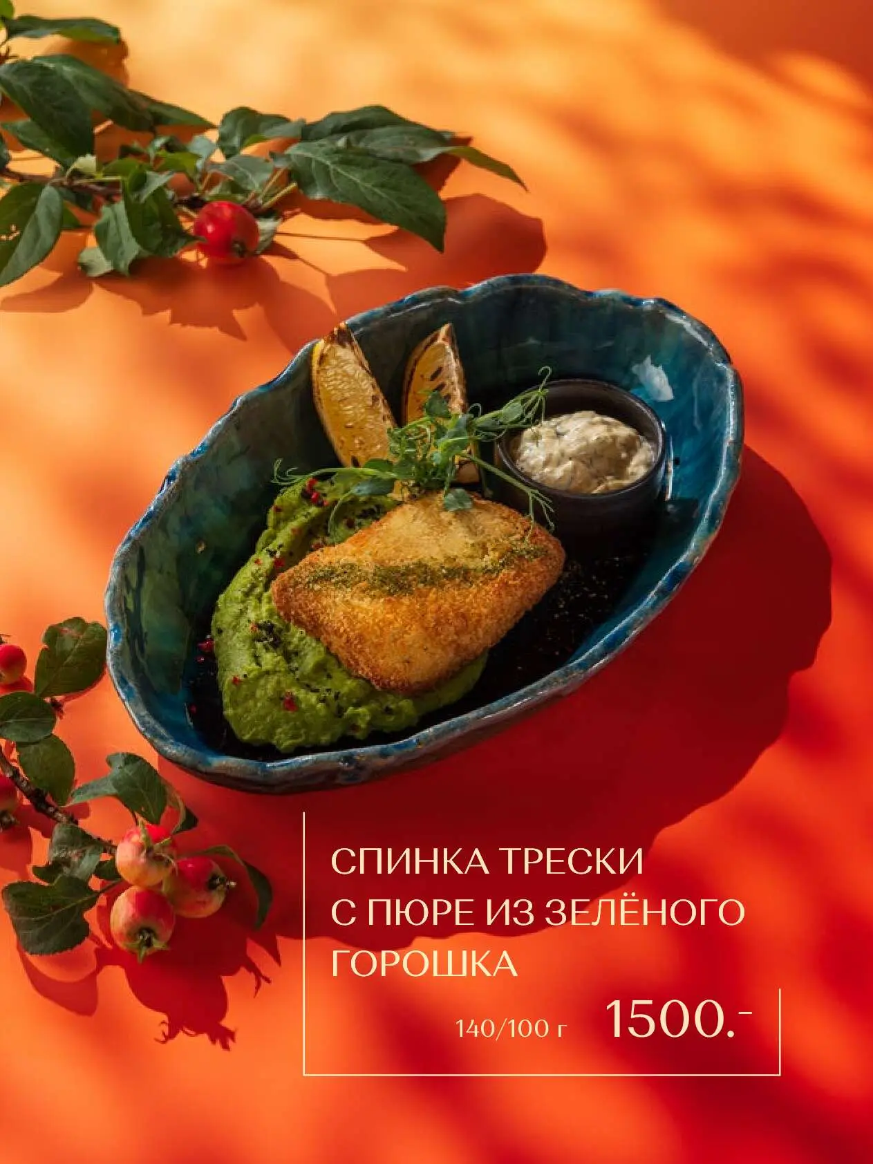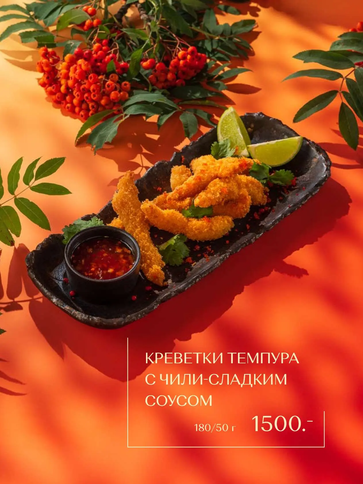 Обжаренные в дровяной печи кальмары, королевские креветки с головой, тунец, филе дорадо, лосось и мидии в сливочном соусе. Подается с тремя соусами: тартар, спайси, унаги