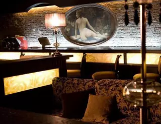 Интерьер клуба выполнен в винтажном стиле в приятных пастельных тонах. В зале царит полумрак, гости могут расположиться в удобных креслах или возле барной стойки. Источники света в виде роскошных люстр и бра дополняют общую картину.