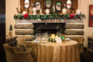 Интерьер ресторана основного зала напомнит о статусной гостиной, в которой имеется всё для приятного отдыха: роскошная мебель, действующий камин из мрамора и даже пианино. Второй зал рассчитан на небольшие компании и оформлен в приятных коричневых тонах. Особенно уютно он выглядит в вечернее и ночное время, когда в нём зажигают свечи.