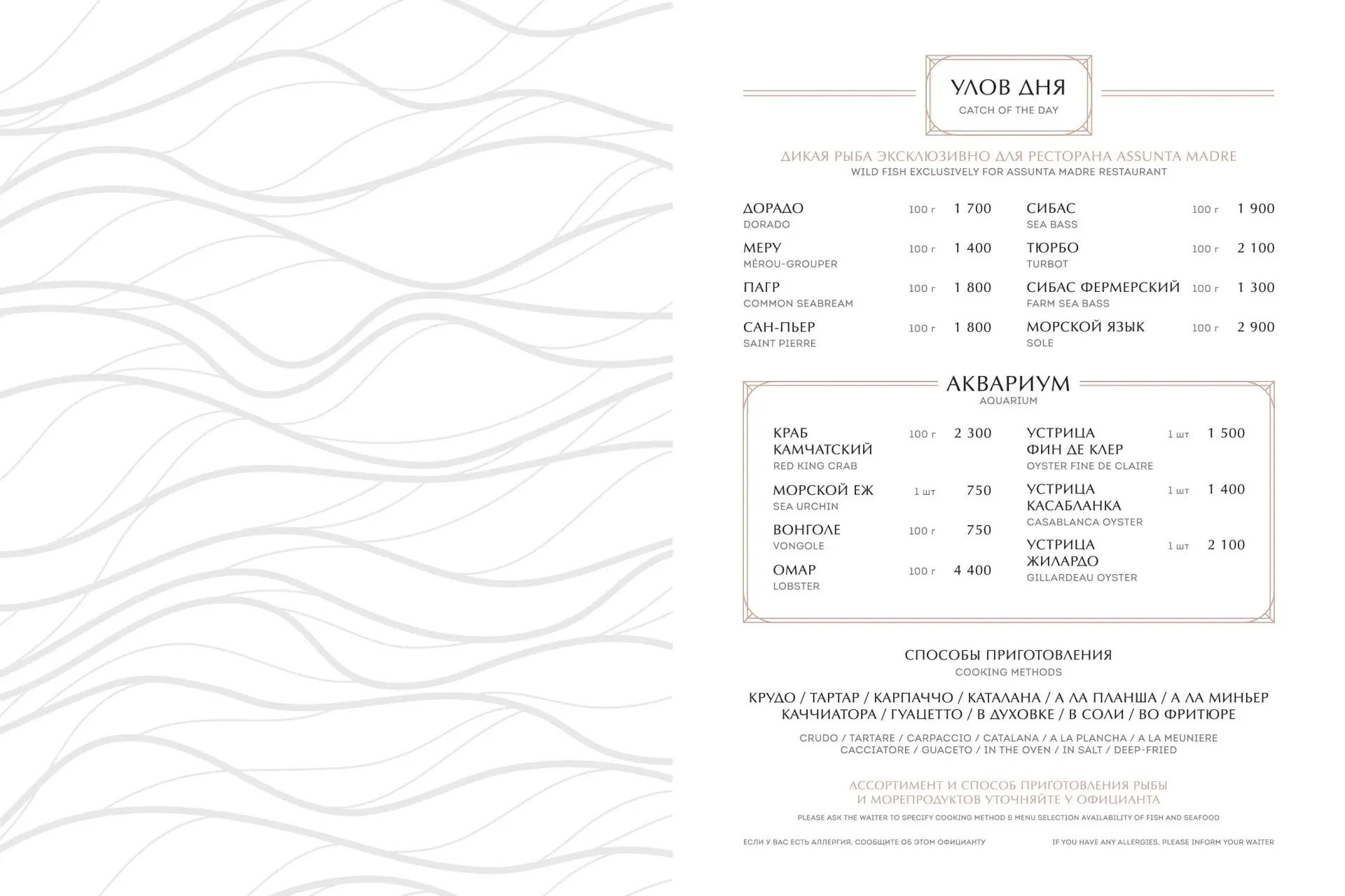 Улов дня(Дикая рыба эксклюзивно для ресторана Assunta Madre)
