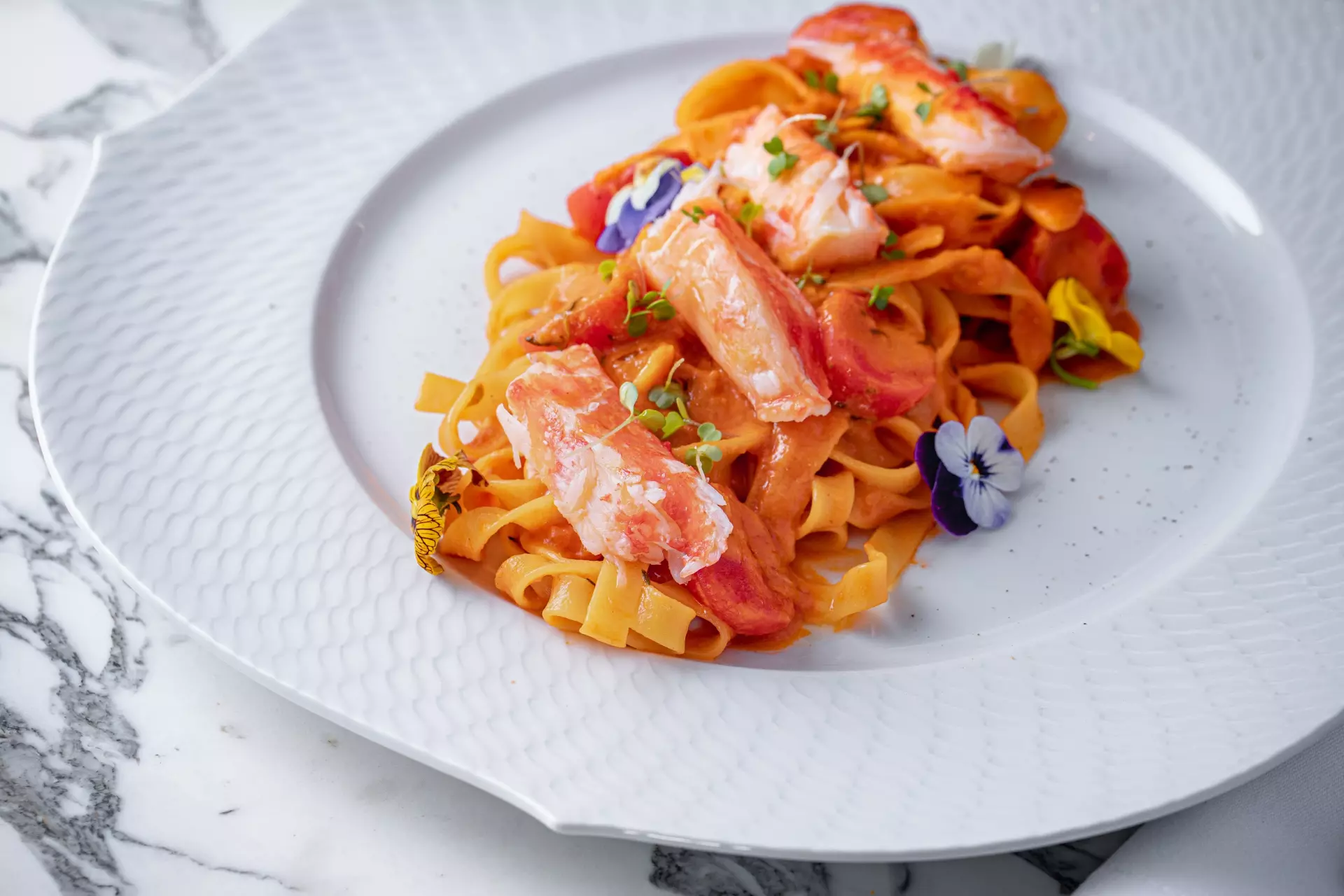 Паста с крабом (280/20 гр.)и сливочно-томатным соусом2400 руб.