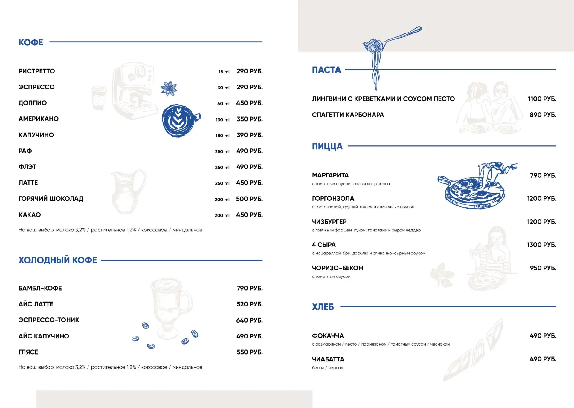 4 сыраС моцареллой, бри, дорблю и сливочно-сырным соусом1300 руб.