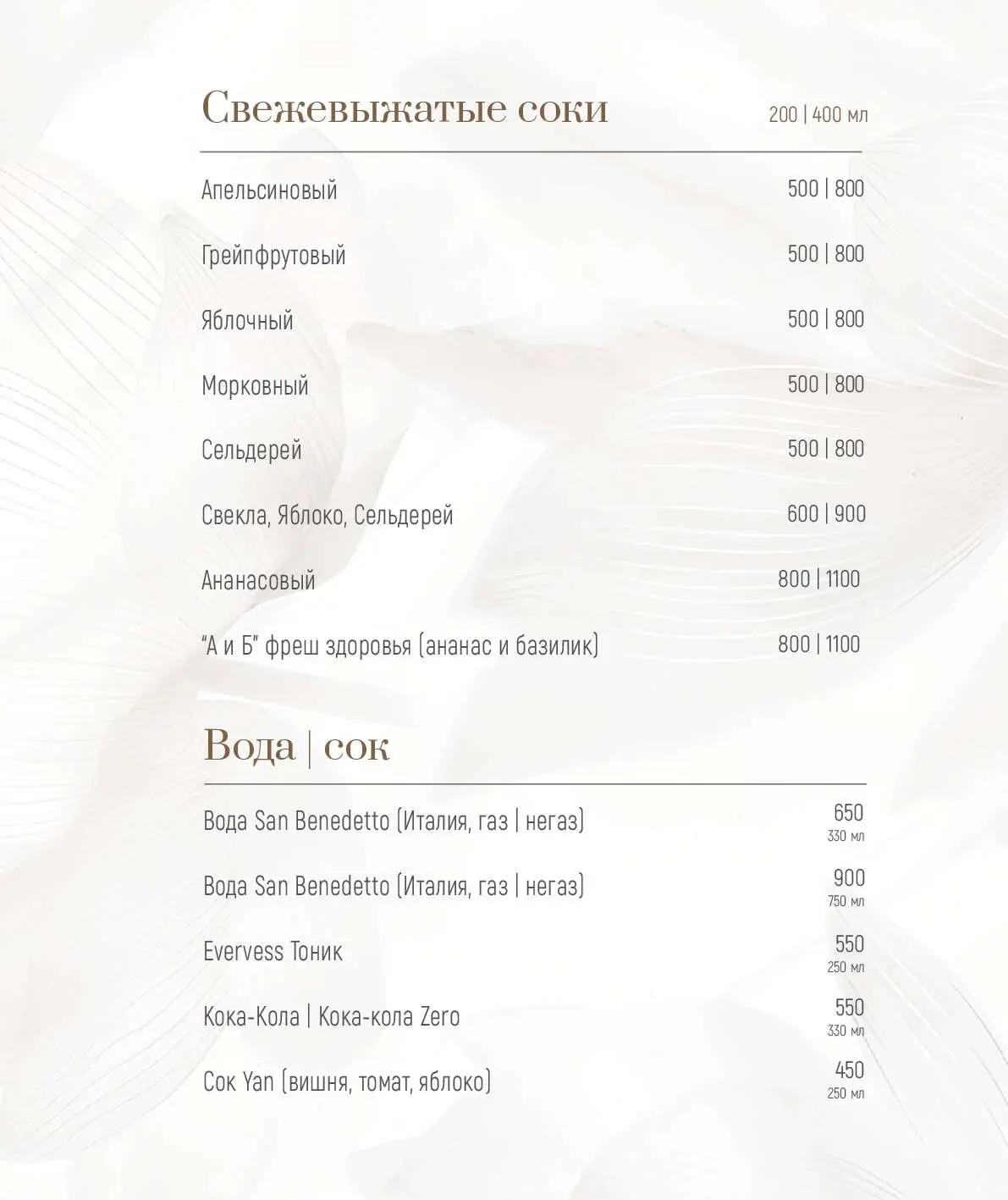 Свежевыжатые соки