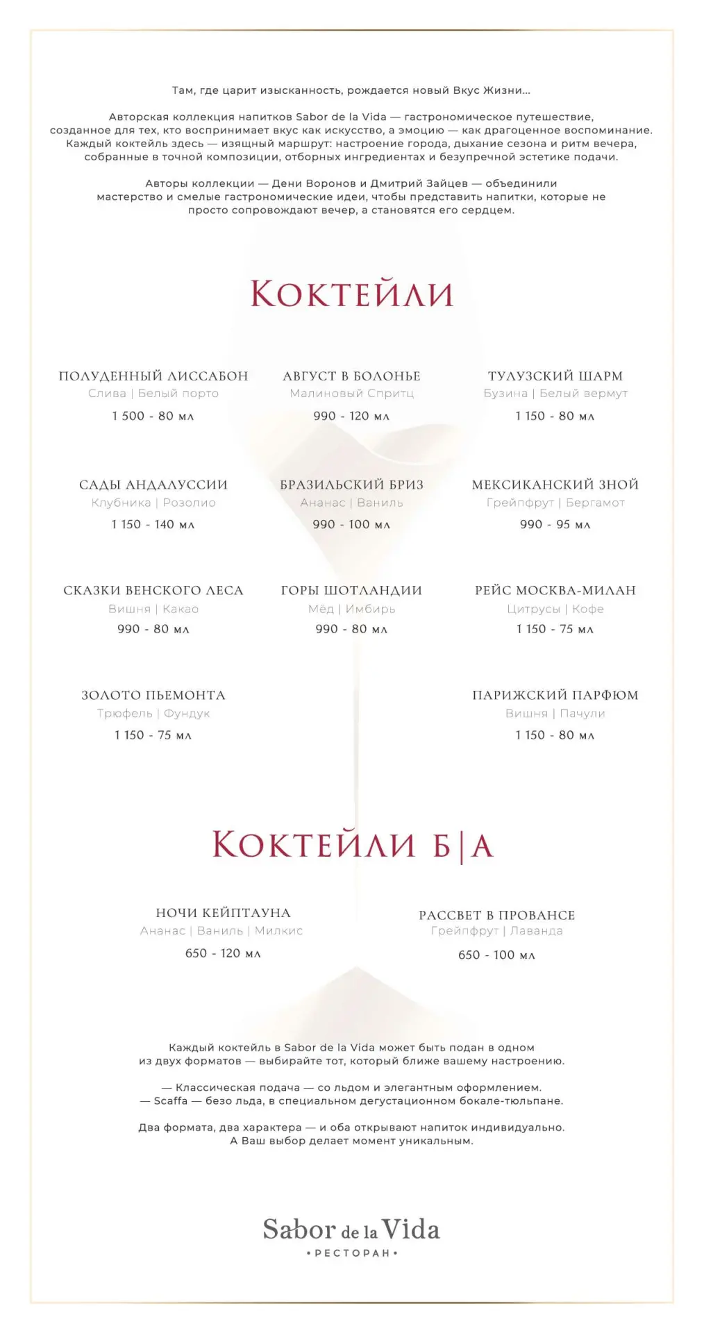Комплемент от Ресторана всем Гостям – бокал эксклюзивного игристого вина из коллекции Sabor de la Vida.