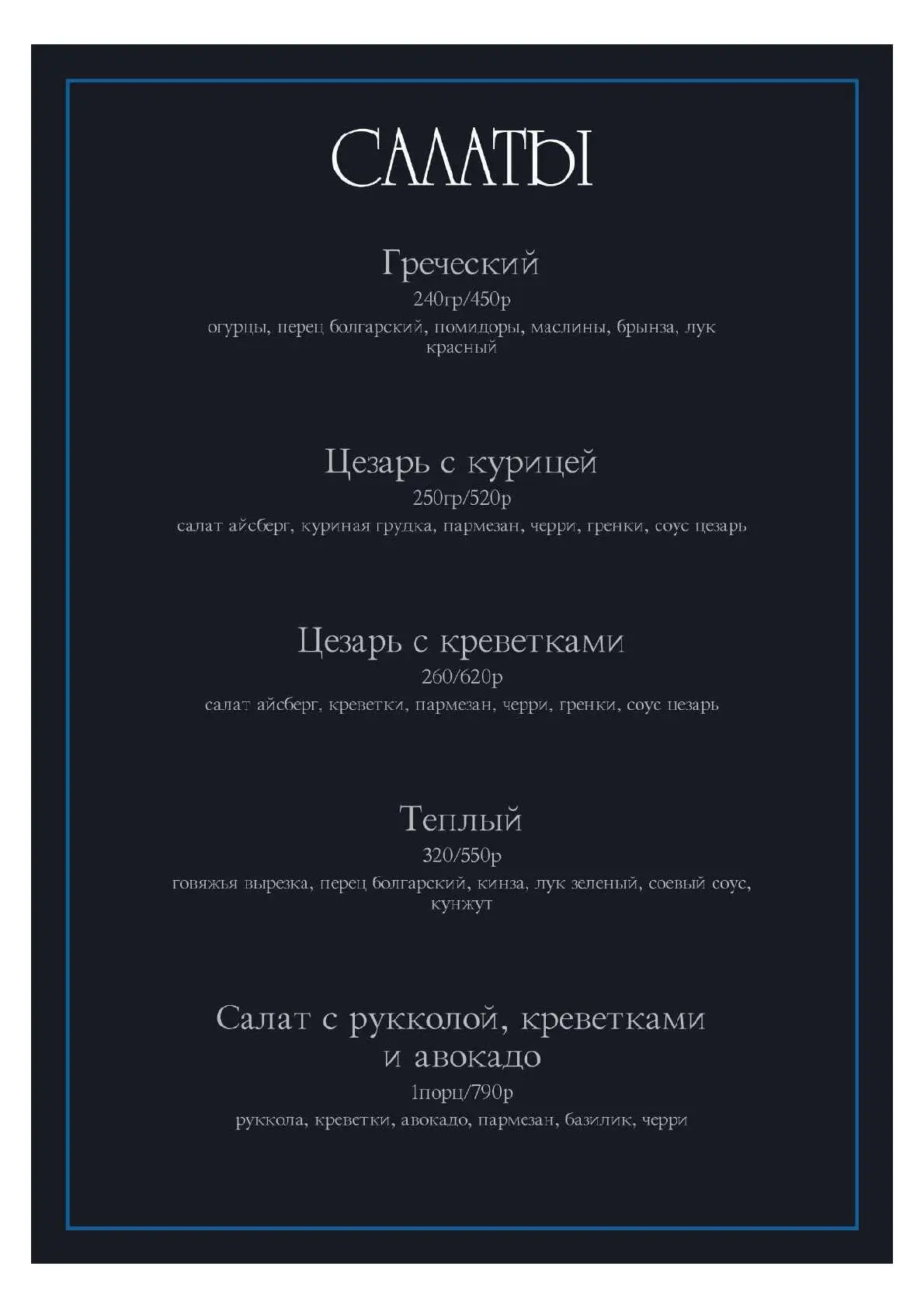 салат с рукколой, креветками и авокадо (1 порц.)690 руб.