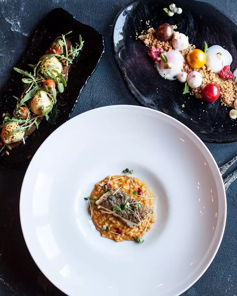 Стерлядь подкопчённая с орзо и соусом биск2400 руб.