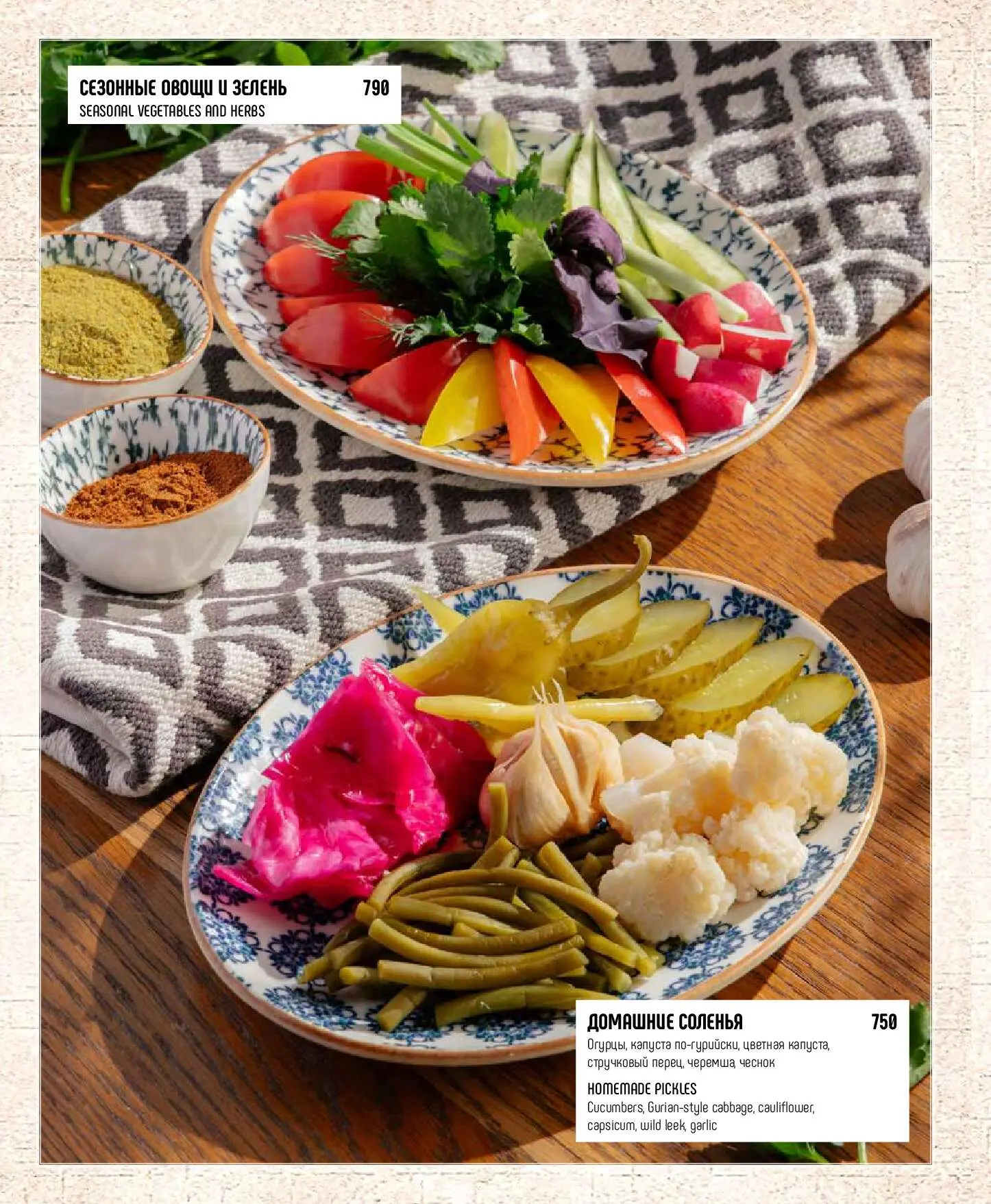 Домашние соленьяОгурцы, капуста по-гурийски, цветная капуста, стручковый перец, черемша, чеснок750 руб.