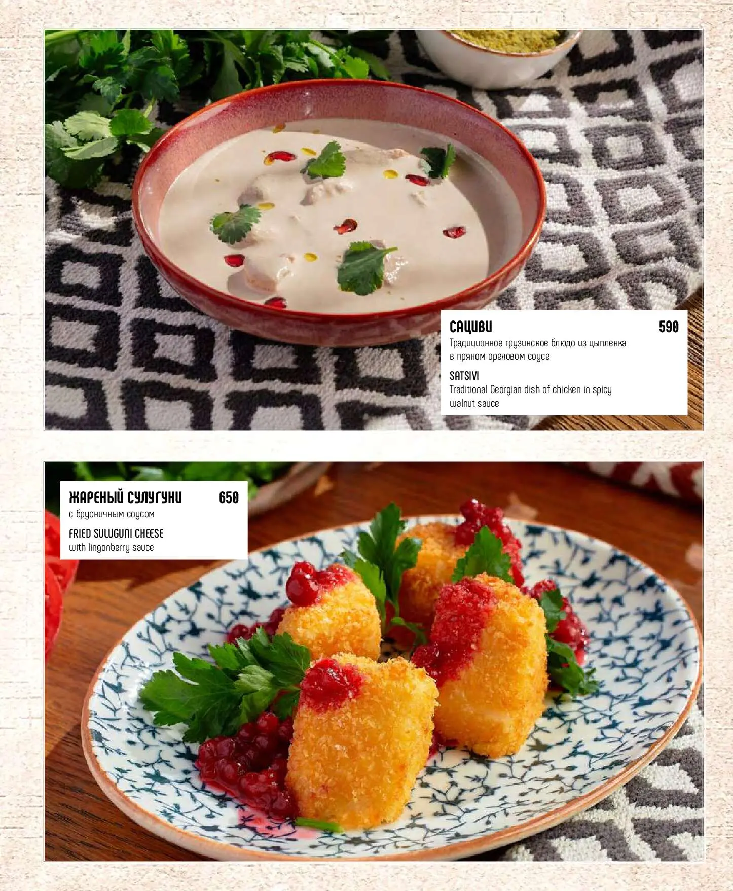 СацивиТрадиционное грузинское блюдо из цыпленка в пряном ореховом соусе590 руб.