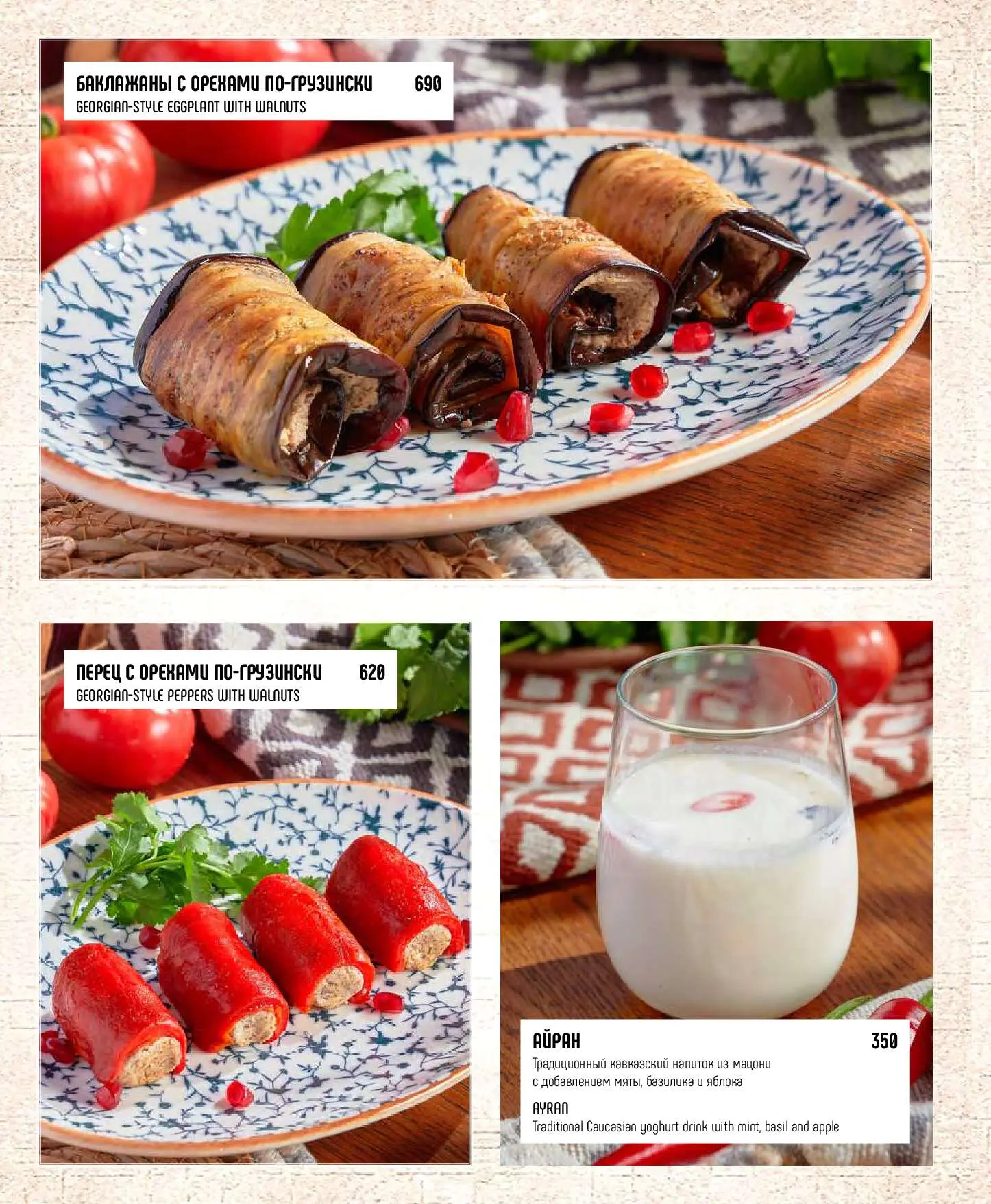 АйранТрадиционный кавказский напиток из мацони с добавлением мяты, базилика и яблока350 руб.
