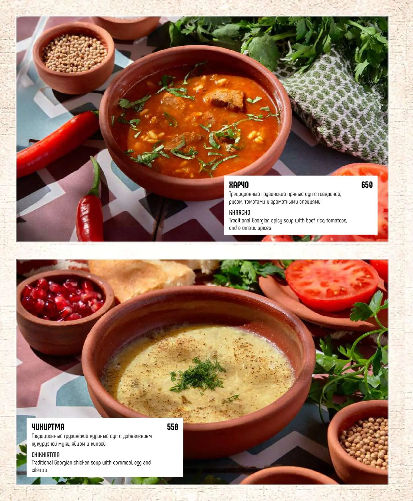 ЧихиртмаТрадиционный грузинский куриный суп с добавлением кукурузной муки, яйцом и кинзой550 руб.