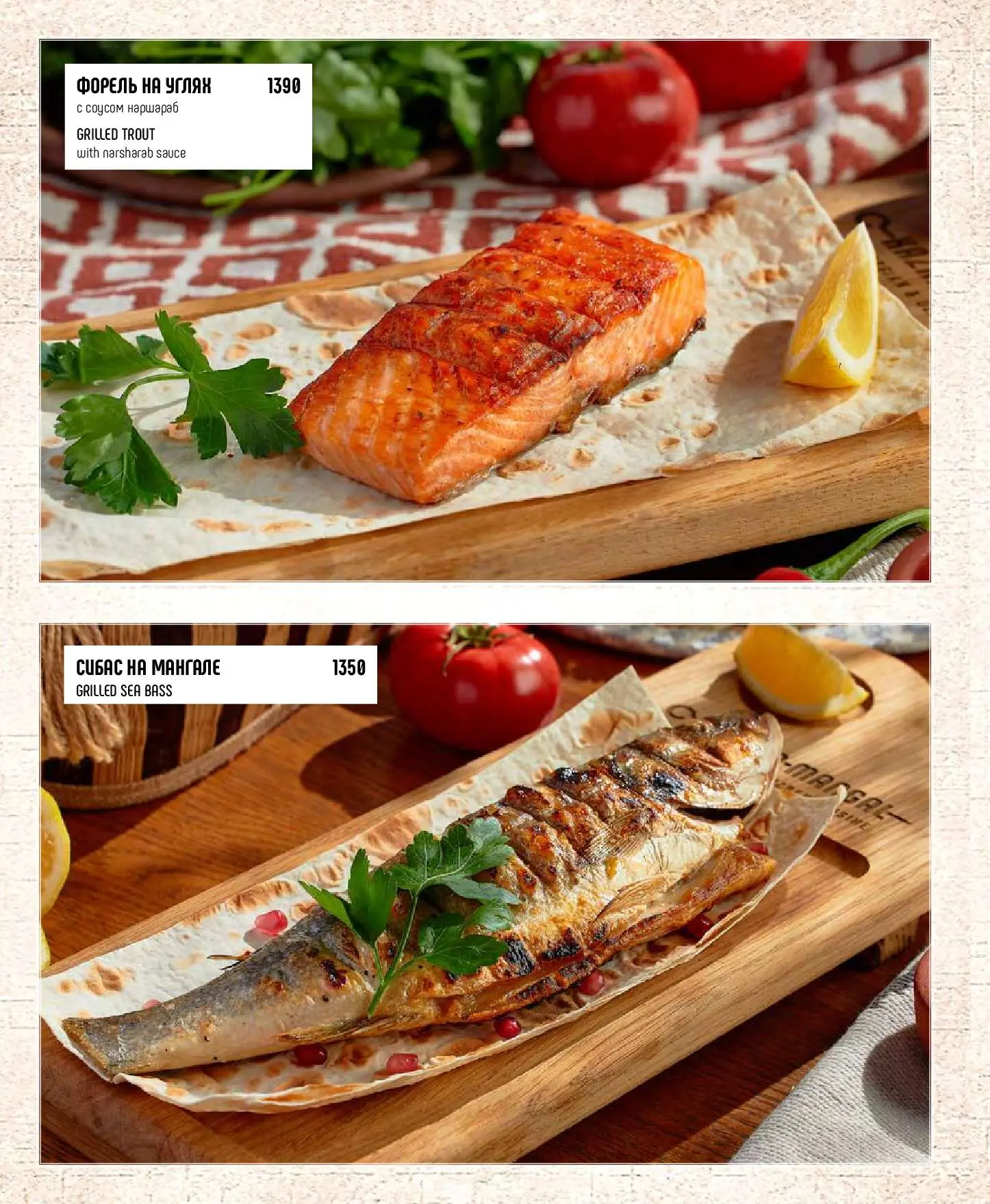 Форель на углях с соусом наршараб1390 руб.