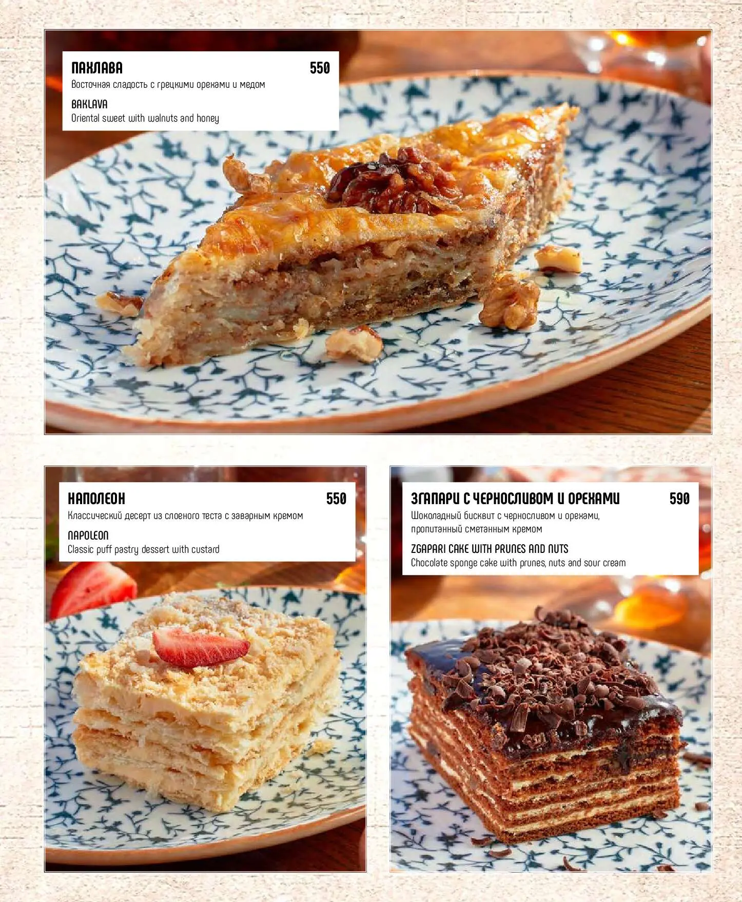 Згапари с черносливом и орехамиШоколадный бисквит с черносливом и орехами, пропитанный сметанным кремом590 руб.