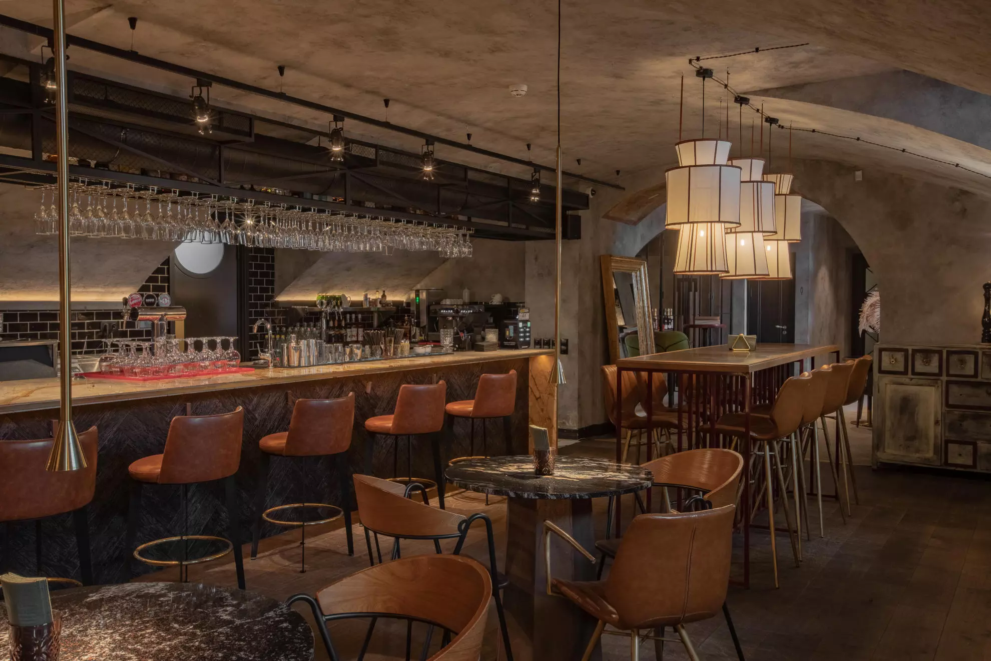 Для лучшего расслабления в ресторане М&B создана камерная атмосфера с максимально приглушенным освещением. Над богатыми столами организовано локальное освещение лампами, мягкая мебель удачно гармонирует с обилием зеркал, тяжелыми занавесками, резными орнаментами на стенах. Интерьер с темным деревом и медными оттенками дополняют высокие свечи, белые скатерти и лаконичная сервировка. Посетили могут воспользоваться бесплатным интернетом и при необходимости зарядить гаджеты. Для автовладельцев предусмотрена открытая городская парковка.