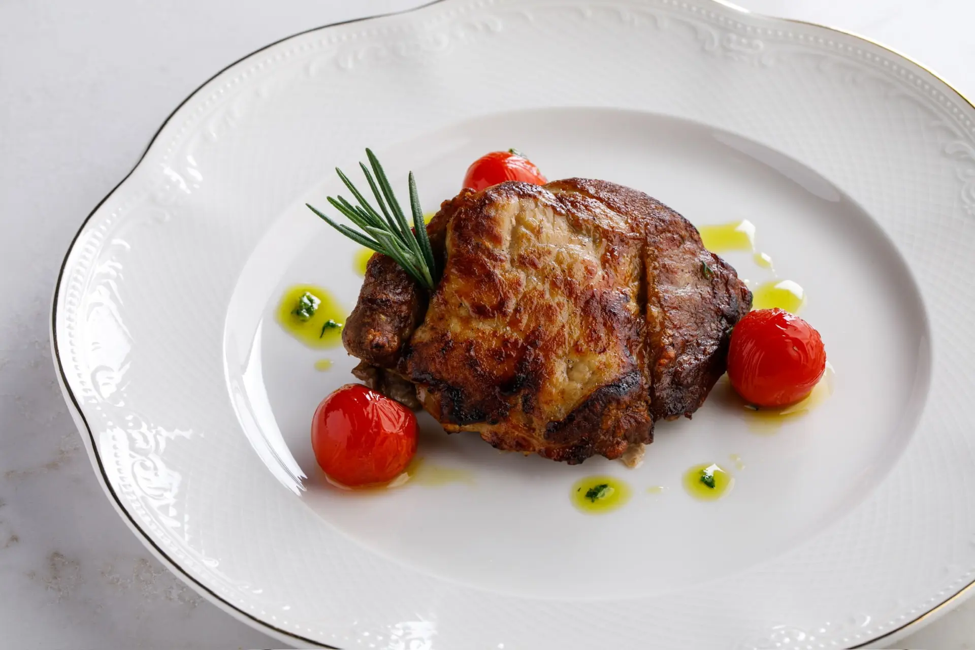 Смаженная румяная свиная шеяс пряной травяной заправкой890 руб.