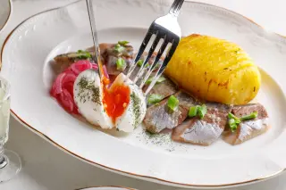 Сельдь Ивасис тёплым картофелем и маринованным луком720 руб.