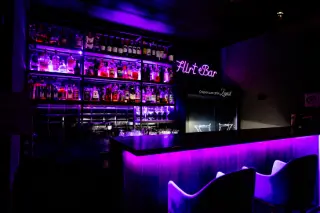 Энергичное и тонизирующее неоновое свечение формирует образ интерьера и погружает публику в атмосферу флирта и непринужденности. Комфортная и изысканная мебель расслабляет и снимает дневное напряжение.